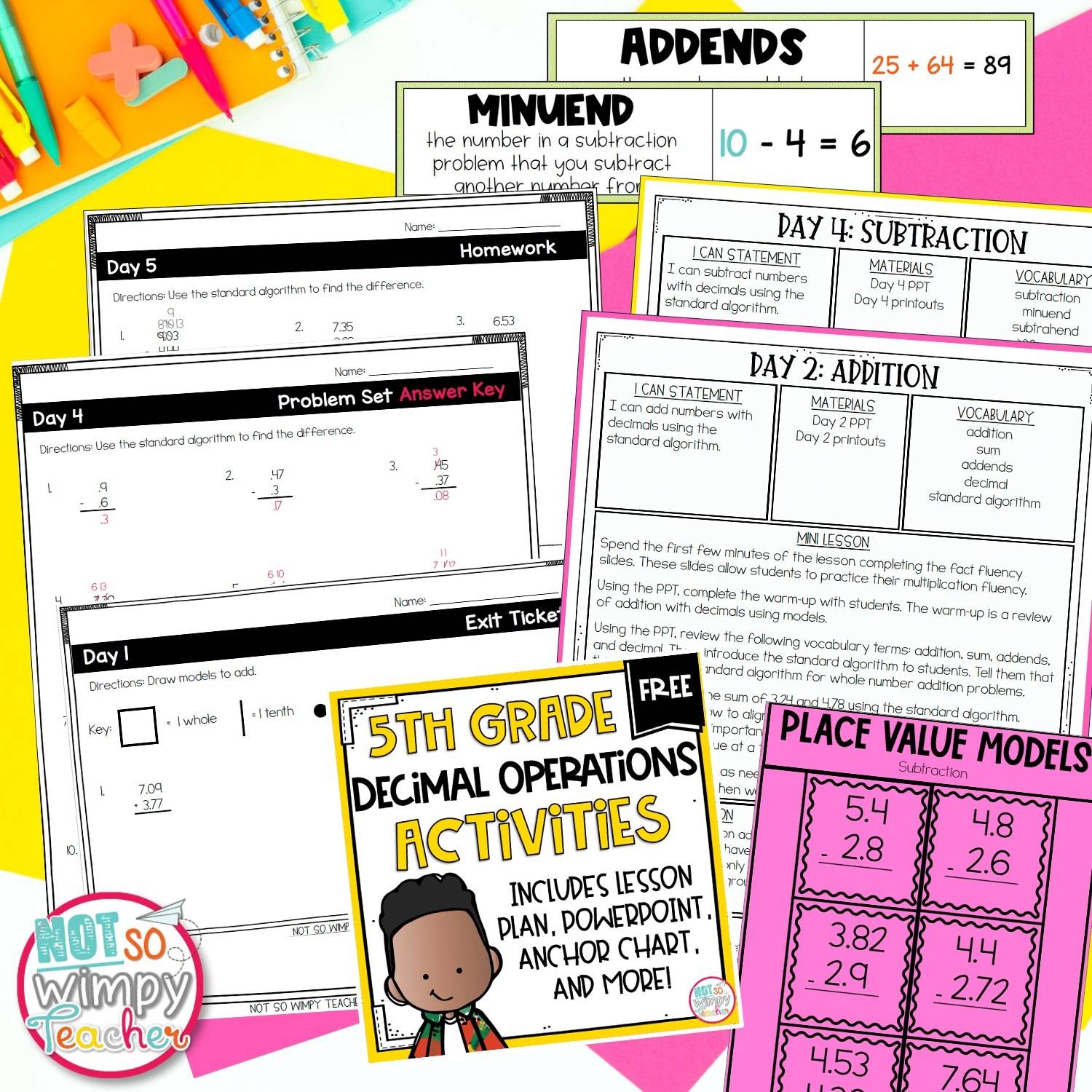 We’ve done your lesson planning! This FREE resource includes 5 days of done-for-you adding & subtracting decimals lessons and activities for fifth grade! See how easy it can be to plan, prep, and implement effective and engaging math lessons.